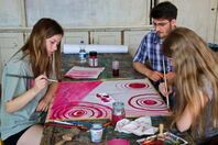 Bei den Schülern treibt er den Prozess des Verdichtens in den Bildern voran, indem er gelungene Partien herausstellt. In der nächsten Arbeitsphase heißt es: „Treibt es noch mehr auf die Spitze“, „haucht dem Bild bei aller Systematik mehr Leben ein“. Denn beim Malen selbst gehe es dann darum, den Kopf abzuschalten, ergänzt Kunstlehrer Stefan Freiwald als Kursleiter. Vorab Entscheidungen zu treffen ist nun die Losung, statt einfach loszumalen. Das war vorab das Ziel, als es nur darum ging, verschiedene Techniken auszuprobieren und seinen eigenen Stil zu finden.