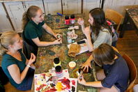 Die Schülerinnen und Schüler der 11sw, die für die Oberstufe Kunst gewählt haben, experimentierten mit Farben und Techniken. Eine kleine Gruppe aus dem Musikkurs verfolgte diese Aktivitäten der Klasse mit Kamera und Schreibblock. So entstanden viele Fotos (Maja) sowie Berichte für diese Homepage (Thies), für die Schülerzeitung (Cara) und die Norddeutsche Rundschau (Carolin) – außerdem ein kleiner Film (Thorge, Paul), für dessen Zwischentitel die Musik die Anregungen lieferte.