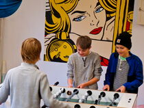 Der neu gestaltete Pausenraum, der drei Tischkicker und eine Vielzahl an Gesellschaftsspielen bereithält sowie der neue Verleihkiosk, bei dem sich Schülerinnen und Schüler Pausenspielgeräte ausleihen können, wird von einer zwanzigköpfigen Mannschaft abwechselnd betreut.
