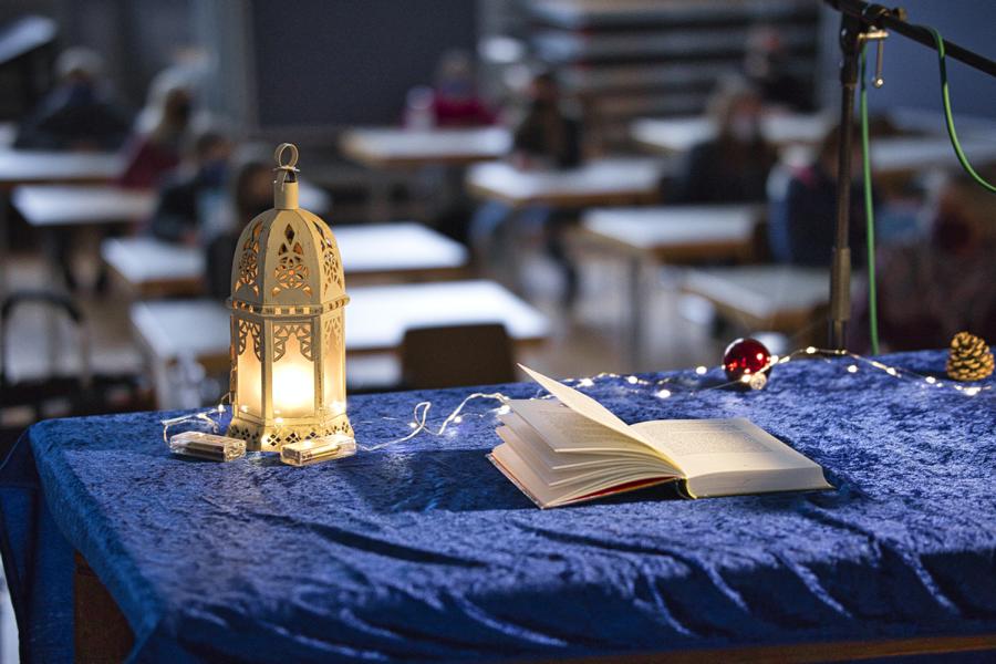 Alle Jahre wieder … fin­det ei­gent­lich un­ser tra­ditionel­les Weih­nachts­singen der ver­schie­denen Stu­fen in der Au­la statt, nur in die­sem Jahr nicht, we­gen „Co­rona“. Da na­tür­lich niemand auf weih­nacht­liche Musik ver­zichten möchte, haben unsere Mu­sik­lehrerin­nen die­se in den Un­ter­richt ver­lagert, das geht auch ohne Singen und ohne Blas­instru­mente.