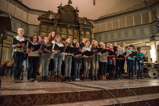 Die Idee entstand im Lehrerkollegium, vor allem die Musiklehrer hatten die Veranstaltung organisiert. Schüler aus allen Jahrgängen trugen zum Programm bei. Und die Musikgenres hatten unterschiedlicher nicht sein können. Das Orchester eröffnete den Reigen mit der Prélude von Marc-Antoine Charpentier. Die Bläser-AG spielte unter anderem Duke Ellingtons ‚20th Century Fox'-Melodie, die jeder Zuschauer aus zahlreichen Filmen kennen dürfte. Des Weiteren trugen verschiedene Chöre ihre Stücke vor. So sang der Unter- und Mittelstufenchor beispielsweise das Lied „Auf uns" von Andreas Bourani oder „Ich bin der Ohrwurm" von Meinhard Ansohn. Die Capella-Gruppe trat mit zehn Schülern auf und stellte den Zuschauern ein Medley aus völlig verschiedenen Liedem vor.